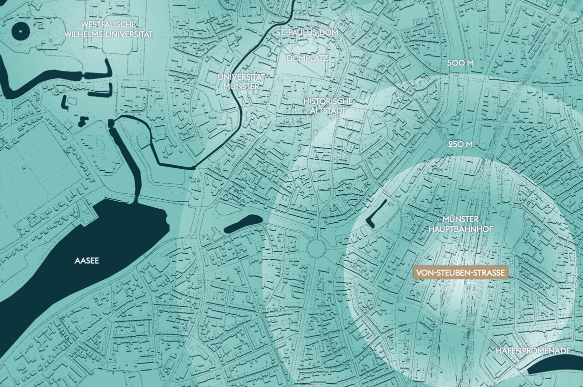 The success of the project has shown that microapartments with a size of 20-40 sqm are in great demand in Münster. The newly built 247 high-quality furnished apartments and 39 underground parking spaces will be built not far from the railway station in Von-Steuben-Strasse.
