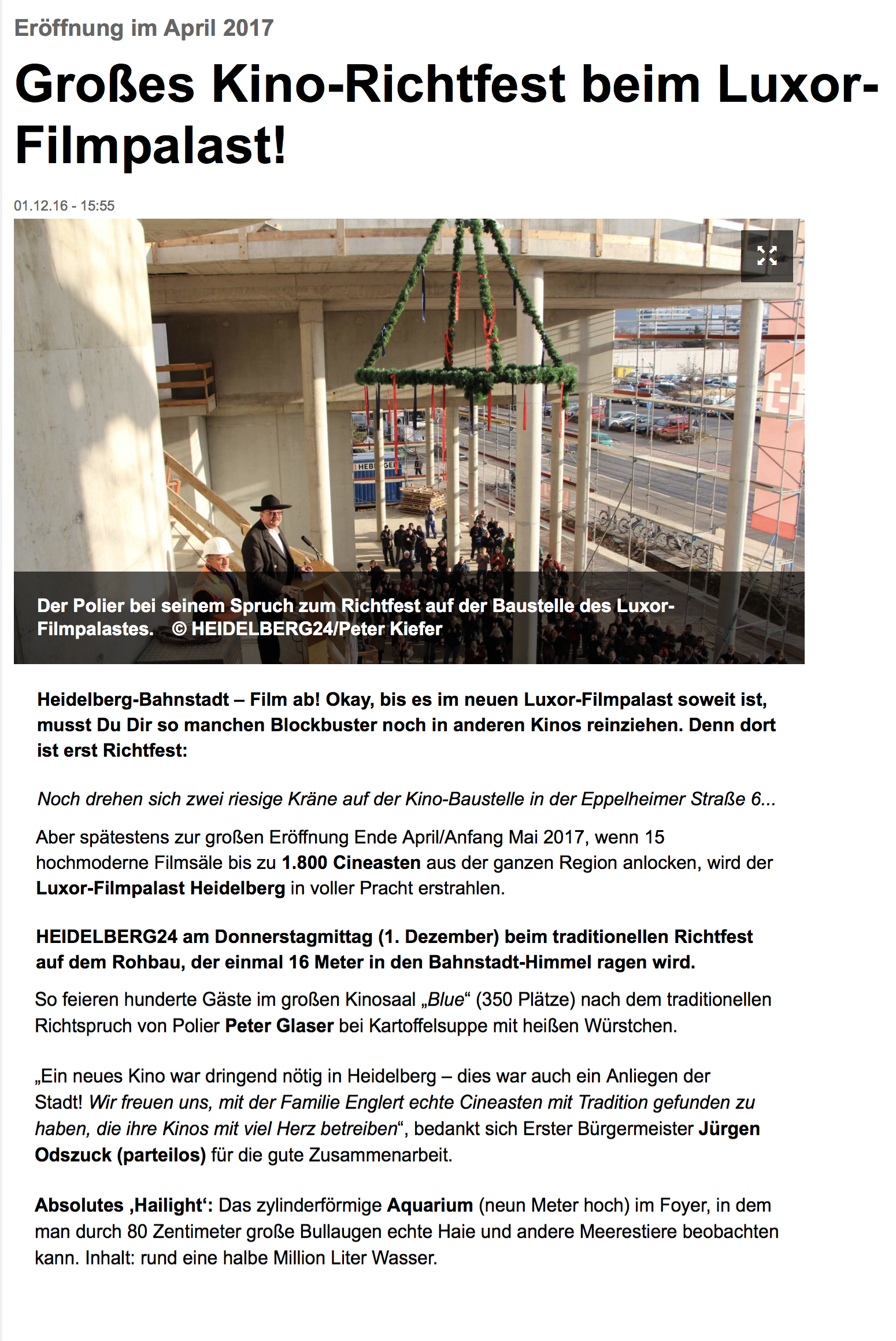 Richtfest Heidelberg: Neubau Luxor Kino (Dez. 2016)