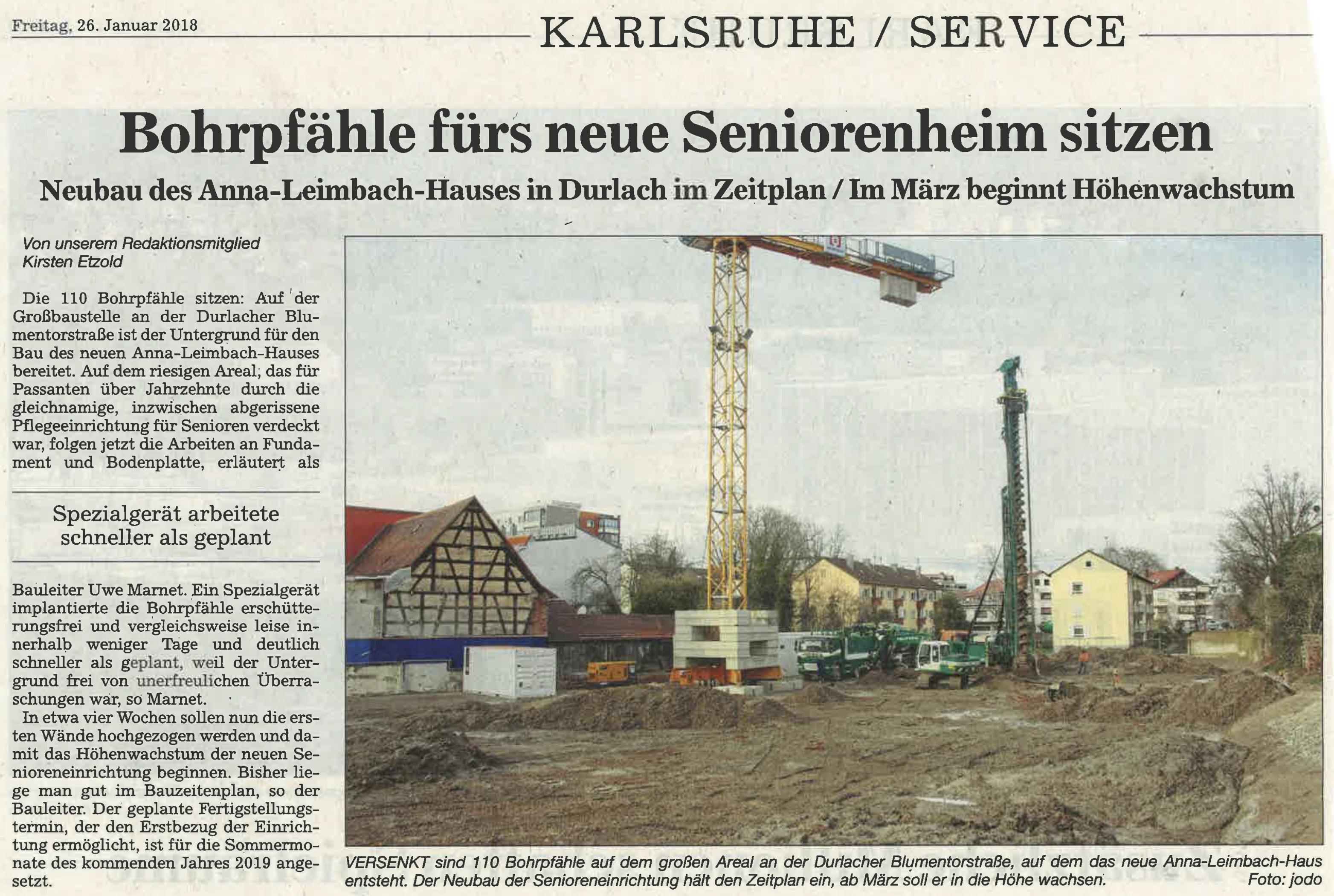 Seniorenheim Durlach: Neubau Anna-Leimbach-Haus (Jan. 2018)
