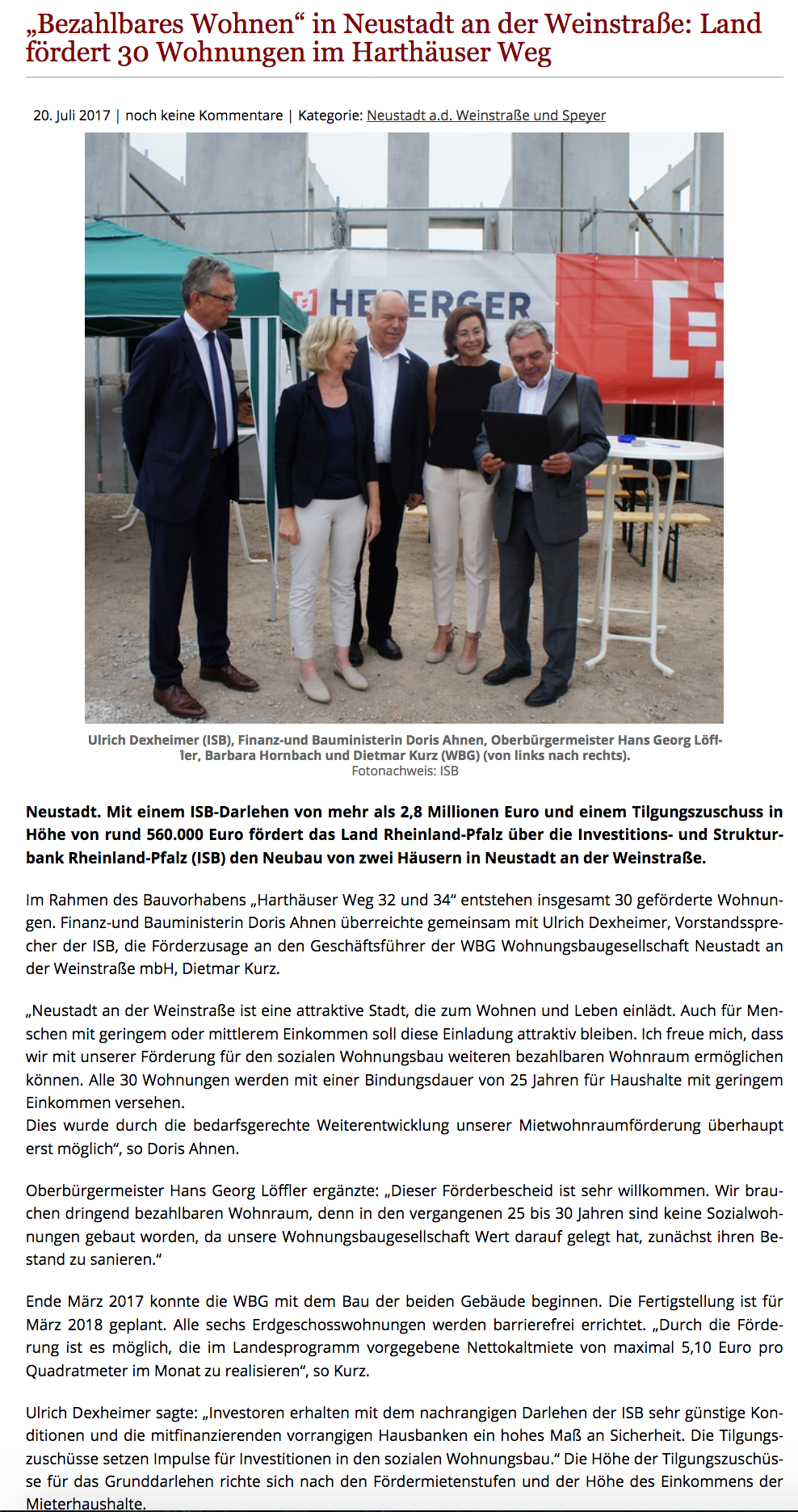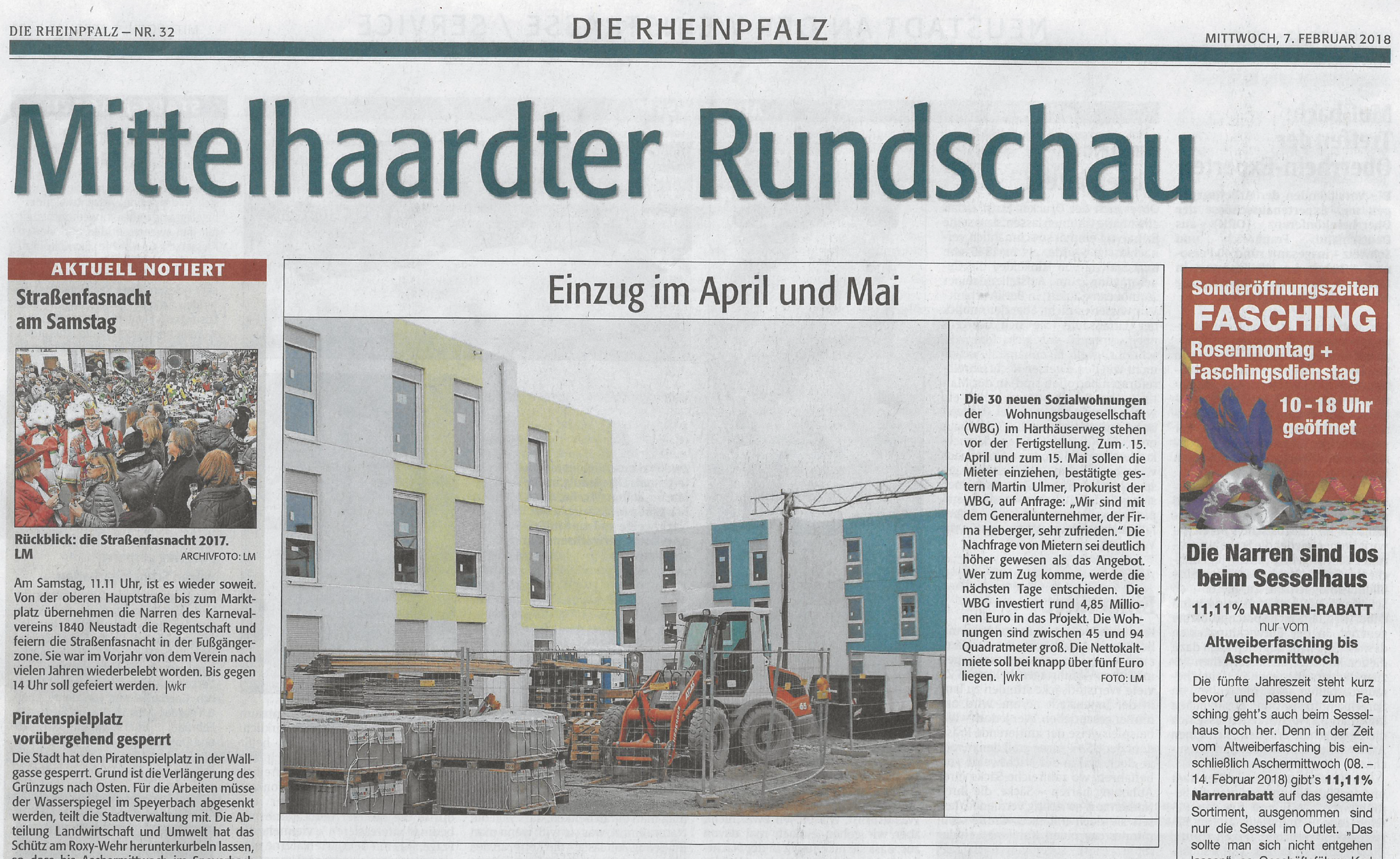 Wohnungsbaugesellschaft Neustadt: Neubau von 30 Sozialwohnungen (Febr. 2018)