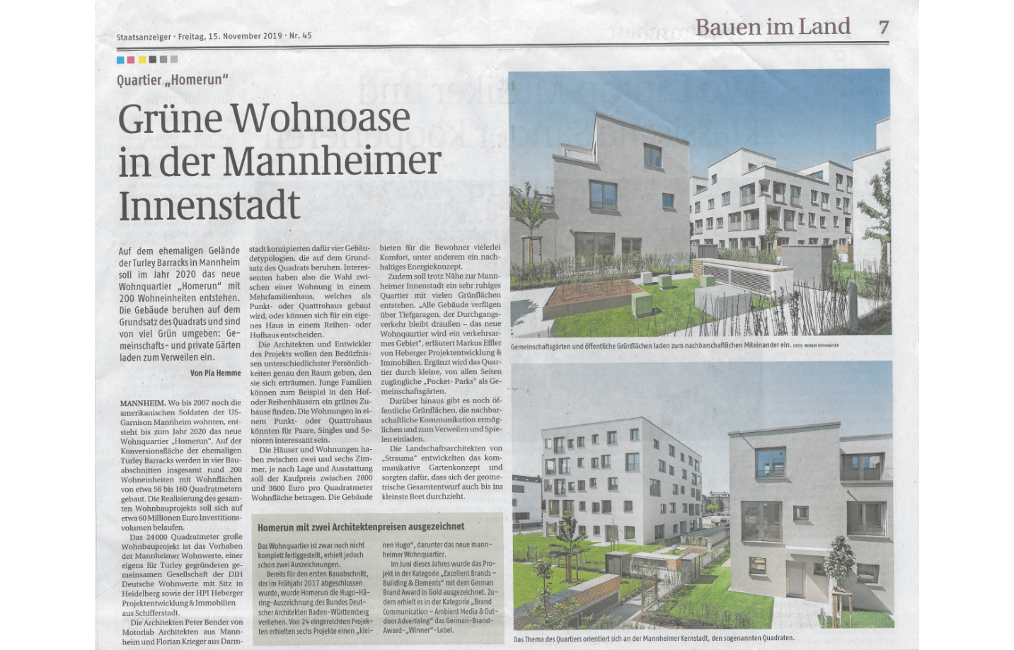 STAATSANZEIGER – Quartier Homerun (November 2019)