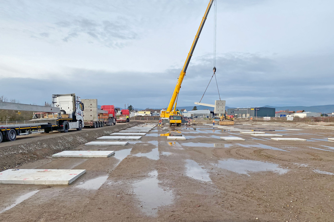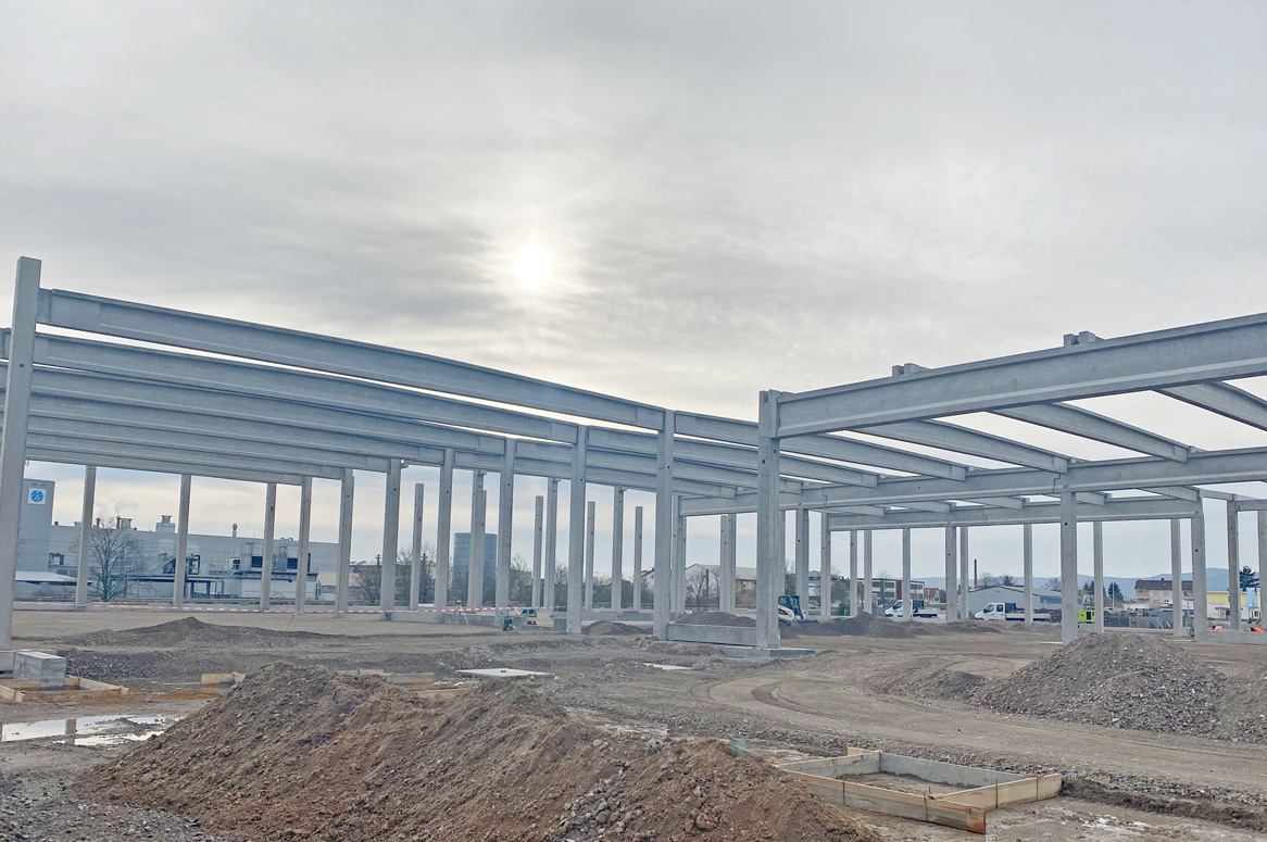 Die Fertigteile des Bauvorhabens „Bauhaus in Haßloch“ wurden in einer tollen Teamleistung in unserem Fertigteilwerk in Neulussheim geplant, produziert und durch uns montiert.