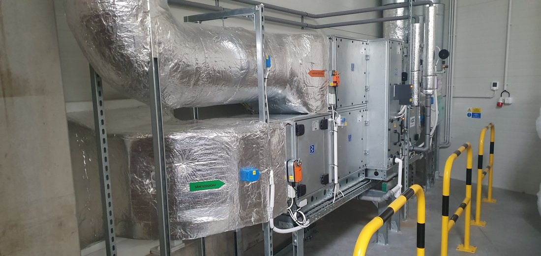 Die Lagerhalle ist ein selbständig stehendes Objekt mit einem Flachdach in Sattelform. Das Objekt wird aus einem vorgefertigten Stahlbetonskelett gefertigt, das aus Pfeilern und Dachbindern besteht. Den Dachmantel bilden IPN-Dachpaneele in Grau. Das Dach hat eine PVC-Dachdeckung in Hellgrau. Die Halle ist in zwei Teile gegliedert – in das Stofflager und das Lager der fertigen Produkte. Teil der Lagerhalle ist eine Komplettierungsfläche. Die Bewegung des Materials im Lager wird durch Gabelstapler sichergestellt.