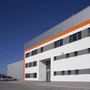 2018 wurde der Bau begonnen, fertiggestellt und übergeben wurde die Logistikhalle im Herbst 2019. Mit 128 Meter Länge, 100 Meter Breite und einer Firsthöhe von 12 Metern gehört sie zu den mittelgroßen Logistikhallen, die HEBERGER in den vergangenen Jahre umgesetzt hat. Die Innenwände der Hallen bestehen aus Stahlbetonfertigteilen, Kalksandstein-Mauerwerk und wurden zum Teil auch in Trockenbauweise umgesetzt.