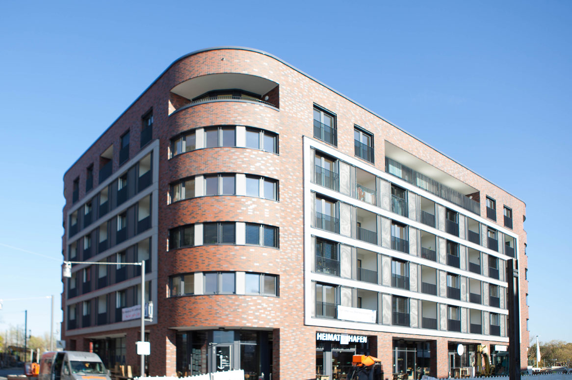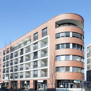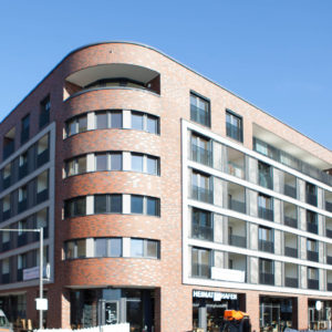 Unmittelbar am Hafenplatz, neben den Hafentreppen in Offenbach, wurde von HEBERGER ein attraktiver Mix aus Wohnen und Gewerbe umgesetzt – die Hafenarkaden. Ein 5-geschossiges Wohn- und Geschäftshaus mit 38 Wohnungen, 4 Ladenlokalen und einer großen Tiefgarage.